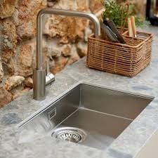 Also consider stainless steel sinks—they’re hard-wearing, easy to clean, and look great in modern outdoor kitchens.