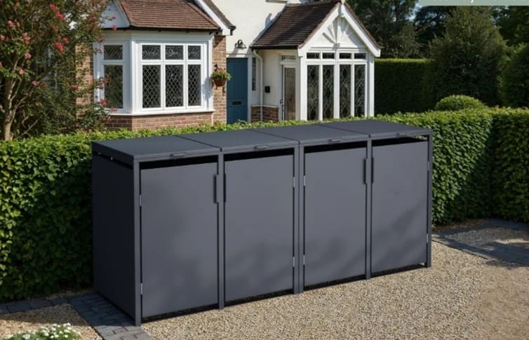 Designed to fit UK standard bins, each unit comfortably accommodates 60L, 120L, or 240L wheelie bins.